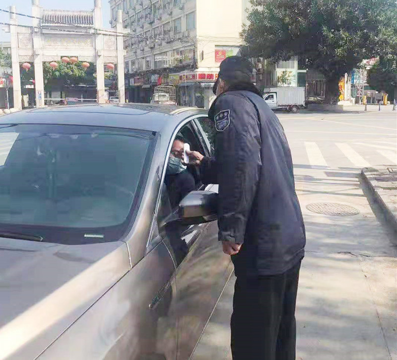 后勤负责人和大学城管委会、小谷围街道办领导检查门岗进出人员管理工作