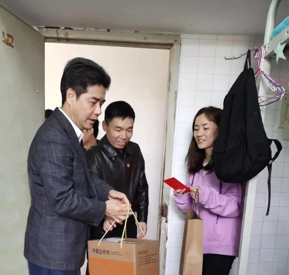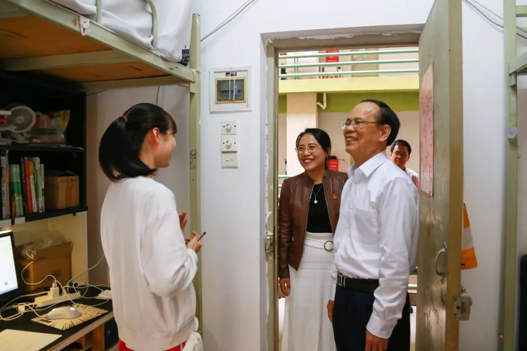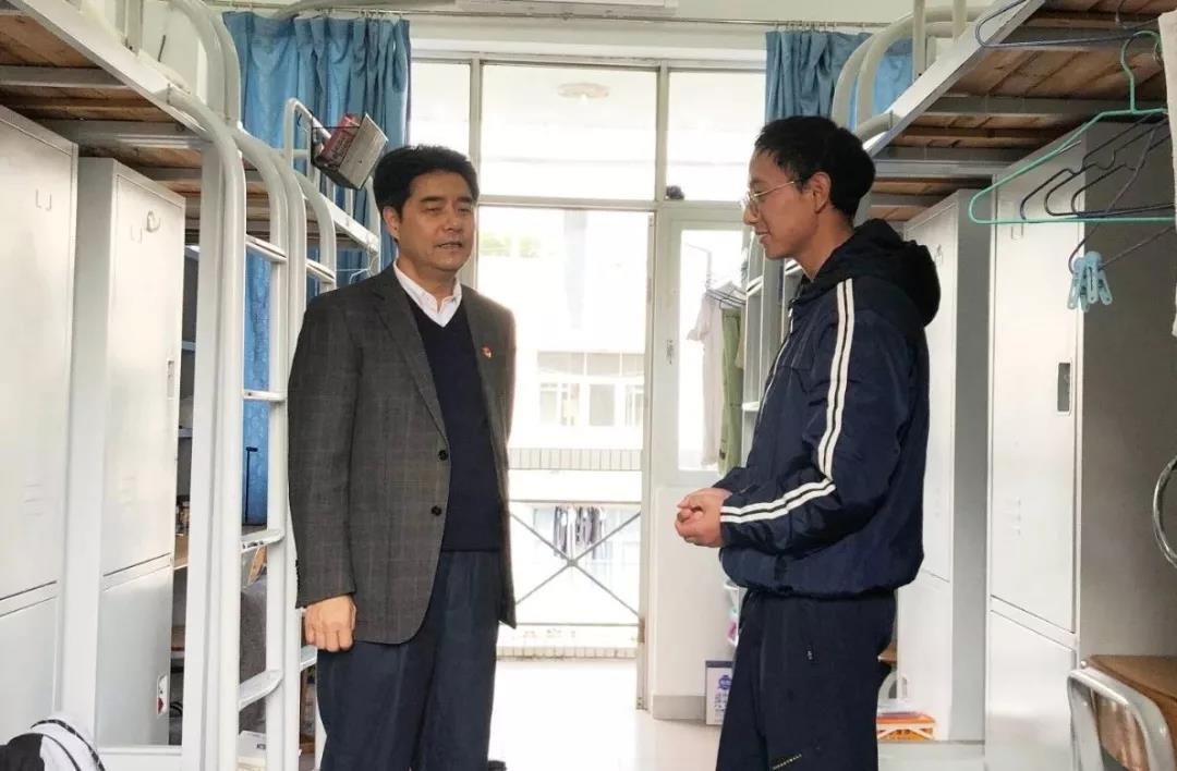 校党委副书记胡钦太走访龙洞校区学生宿舍,看望留校学生代表。