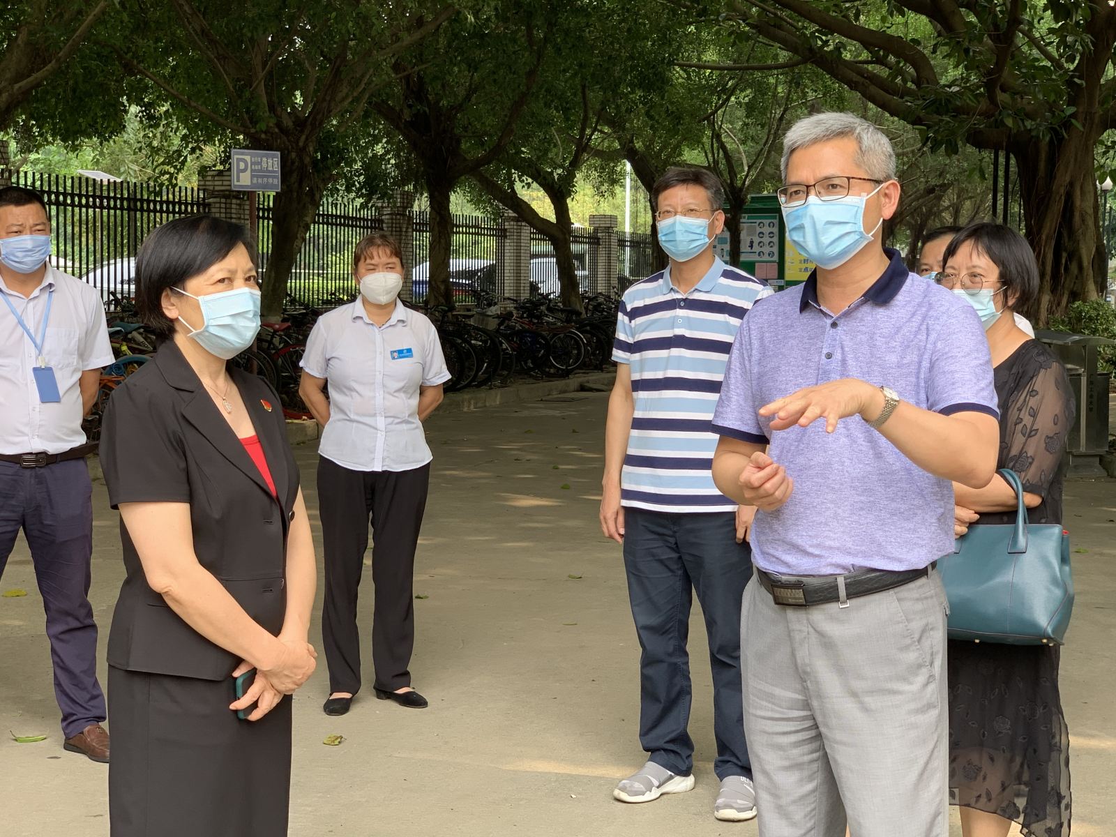 陈卓武向林玲一行介绍了我校特别是龙洞校区在校生的情况,对学校现阶段疫情防控安排、防护物资配备、师生信息排查、错时错峰复学等情况做了详细的说明,林玲对我学校疫情防控工作给予了充分肯定。随后,林玲主任一行在陈卓武副校长的陪同下,检查了龙洞校区内区宿舍、学生第一食堂等重点区域。
