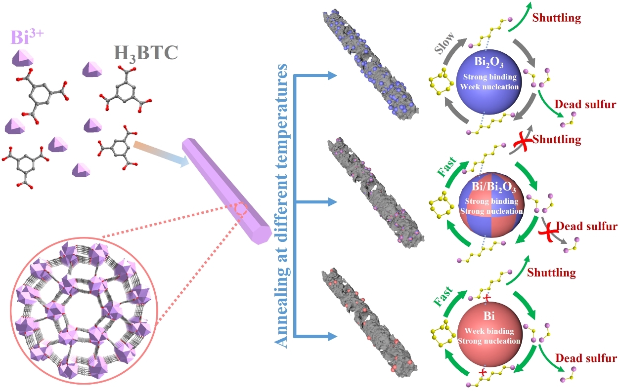 图2:Bi/Bi2O3异质结构的构建及对LiPS吸附和催化转化的影响