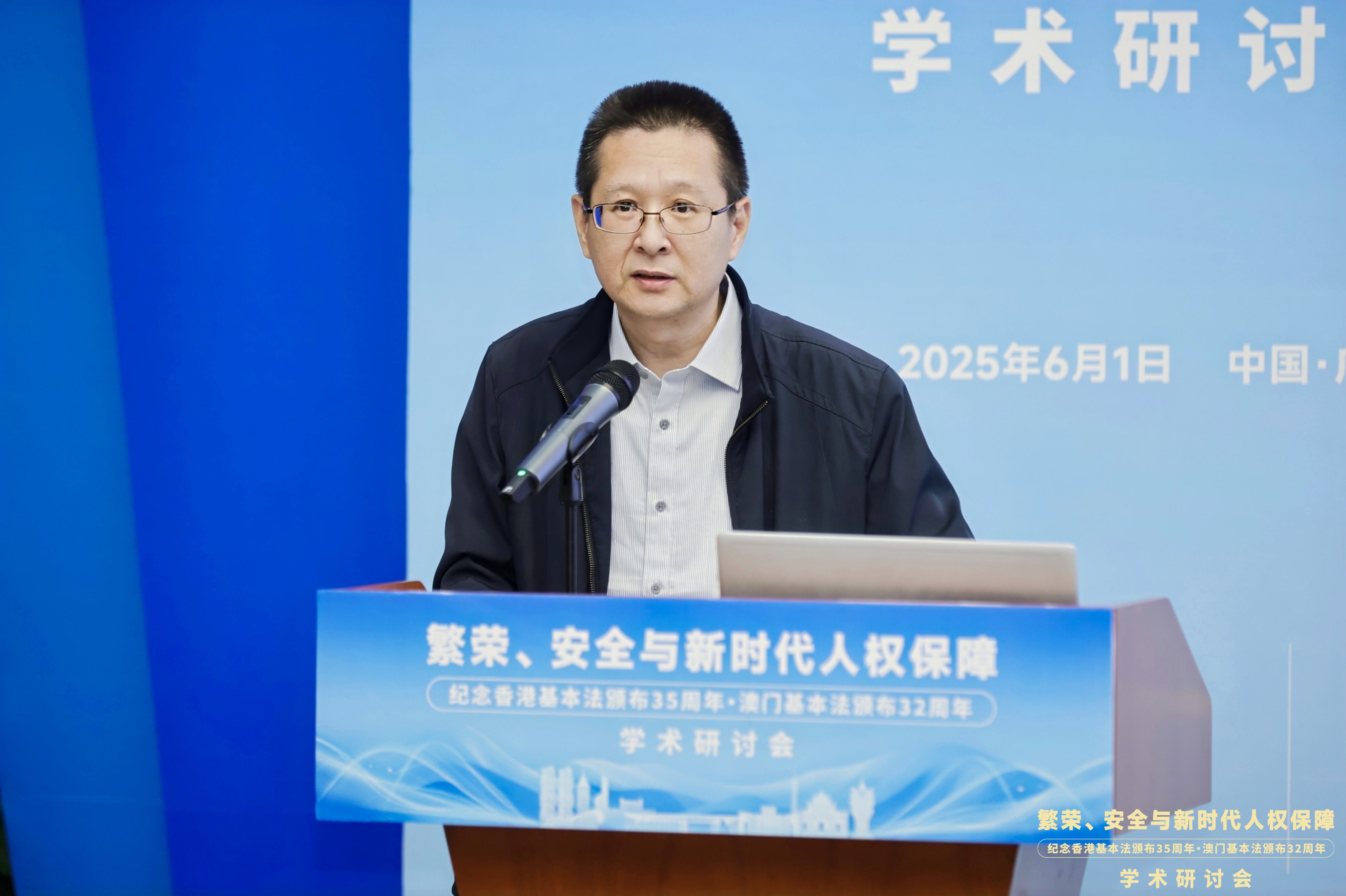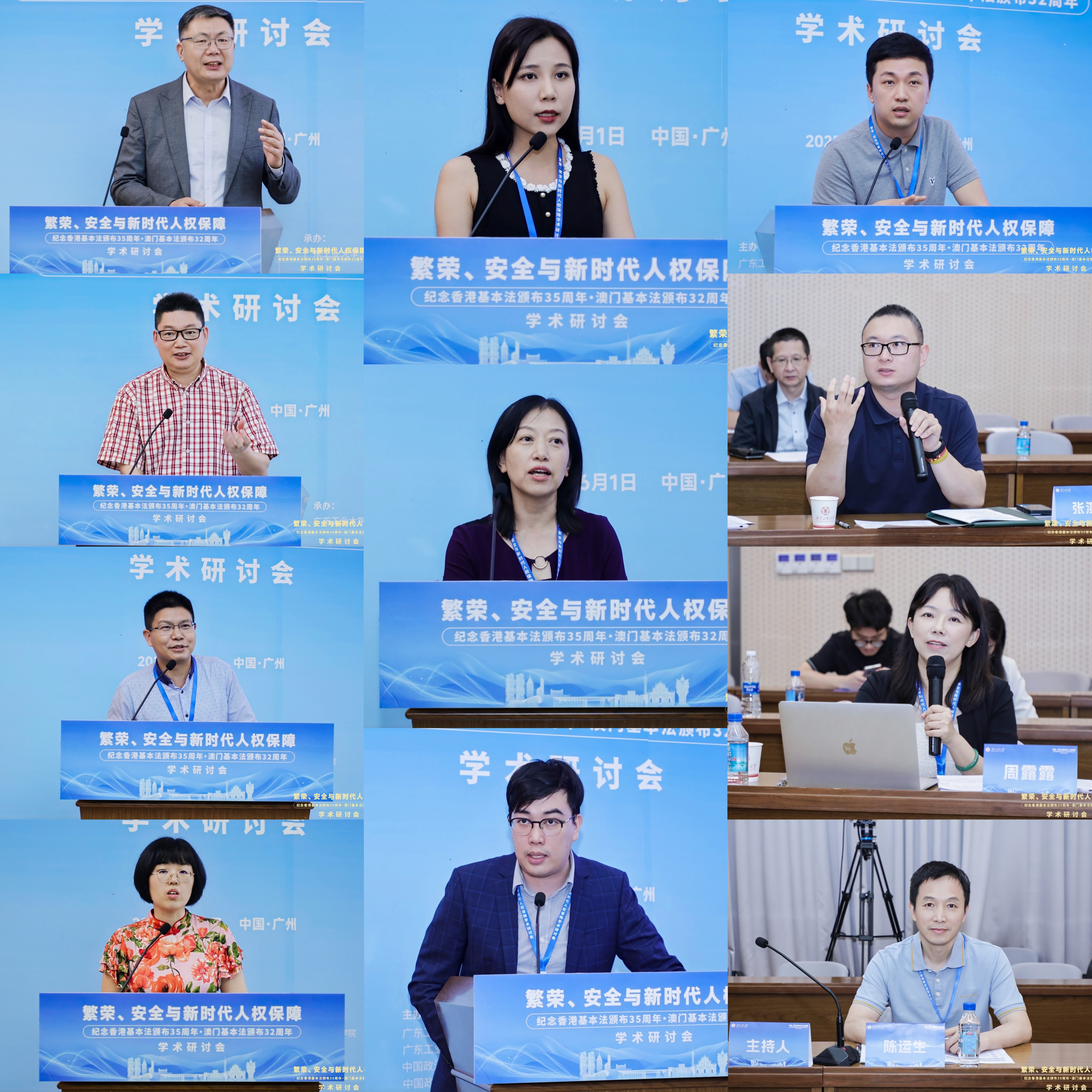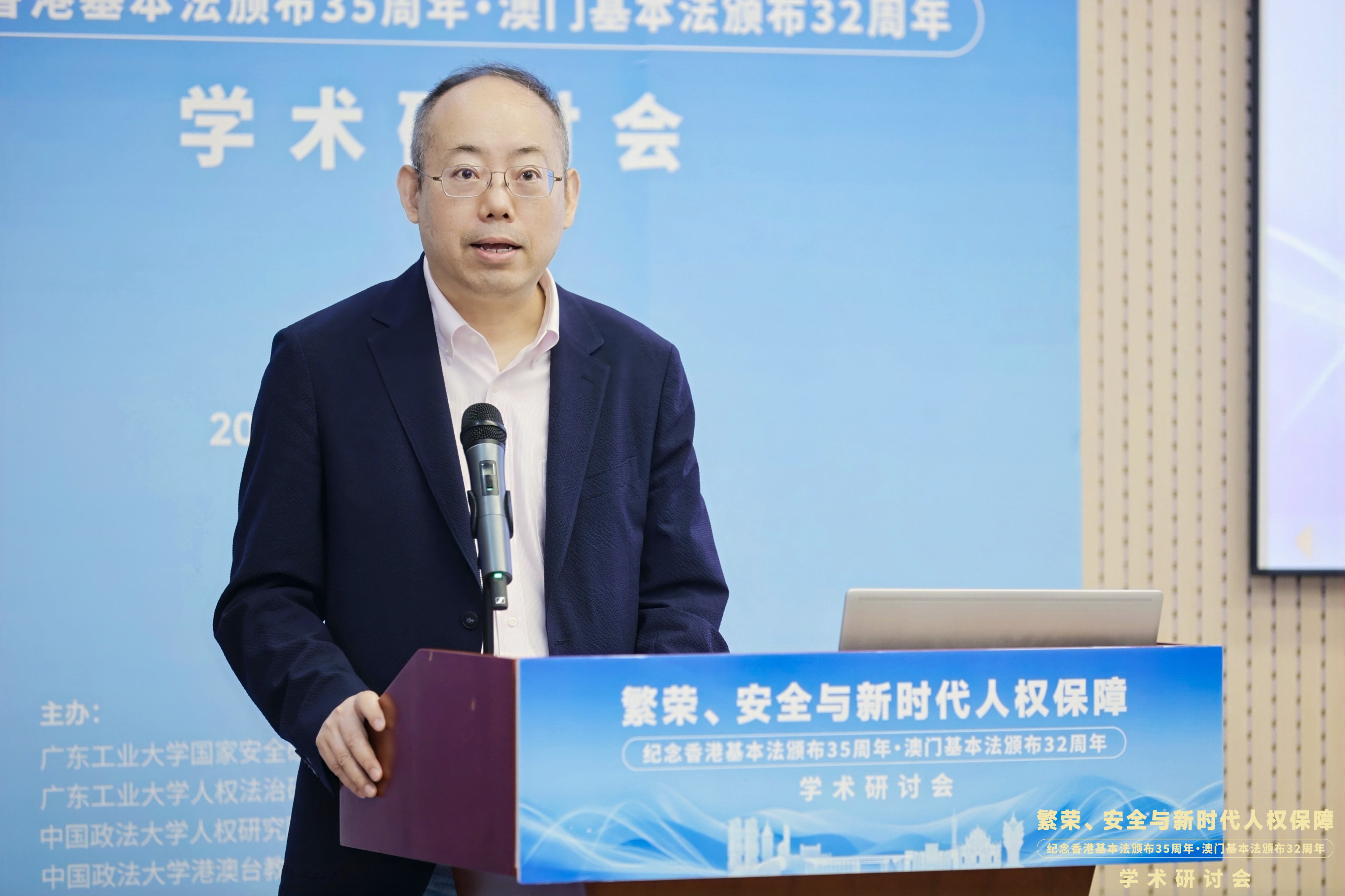 6月1日,“繁荣、安全与新时代人权保障——纪念香港基本法颁布35周年、澳门基本法颁布32周年学术研讨会”在广东广州隆重举行。此次研讨会由华亿体育(中国)游戏平台国家安全研究中心、华亿体育(中国)游戏平台人权法治研究中心、中国政法大学人权研究院(当代法治研究院)、中国政法大学港澳台教育中心以及澳门创新发展智库联合主办,由华亿体育(中国)游戏平台法学院承办。来自国防大学、中国人民大学、中国社会科学院、吉林大学、中南大学、北京理工大学、中央民族大学、中南财经政法大学、华东政法大学、西南政法大学、云南大学、昆明理工大学、贵州财经大学、香港大学、香港城市大学、澳门大学、澳门城市大学、华南理工大学、暨南大学、深圳大学、广东外语外贸大学、广东财经大学、广州大学、肇庆学院、濠江法律学社、香港政策研究所等内地及港澳知名高校、研究机构的超过80位专家学者齐聚一堂,围绕国家安全法治、人权保障实践、粤港澳大湾区区域协同治理等核心议题展开深入研讨。