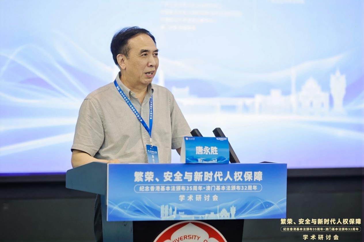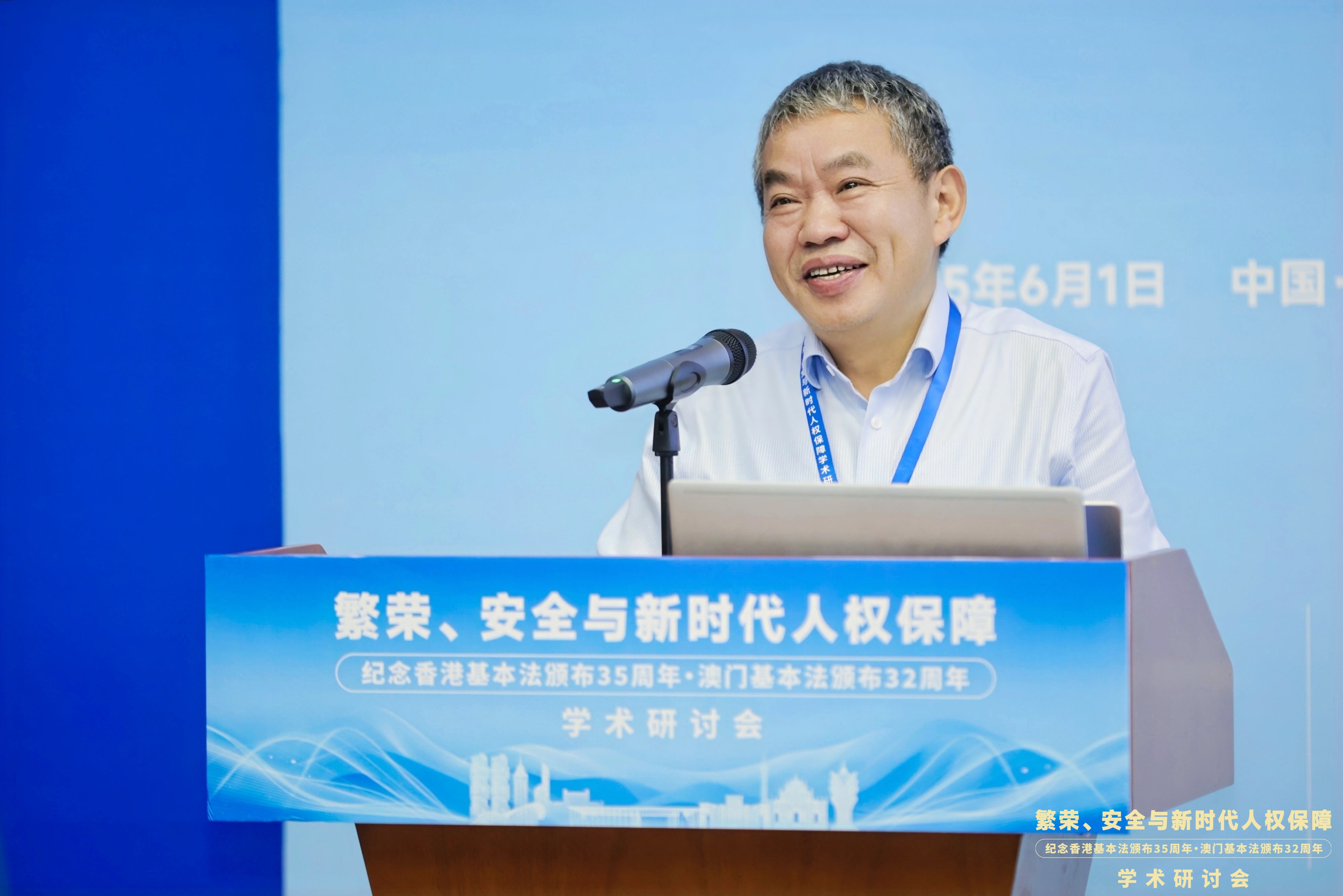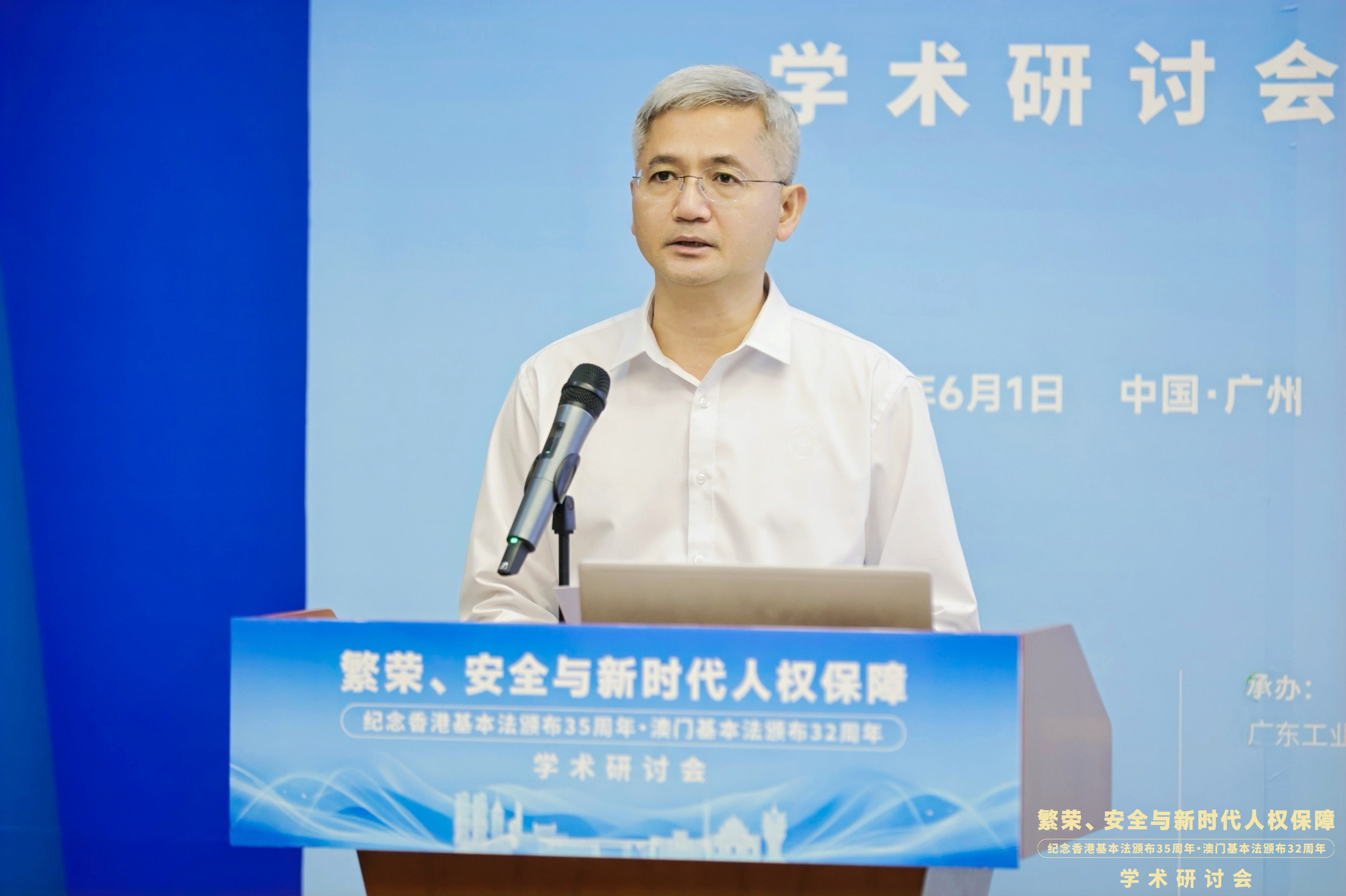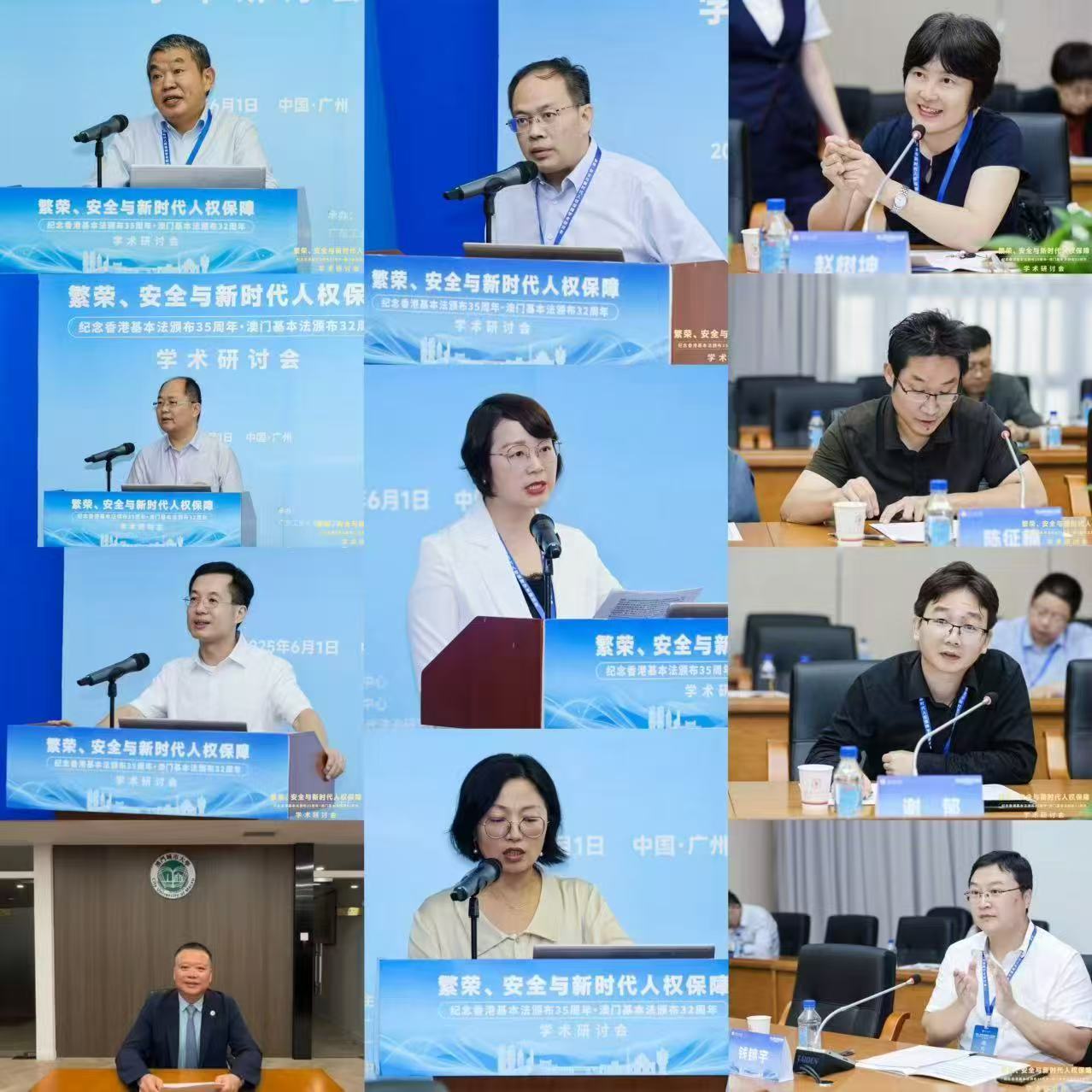 6月1日,“繁荣、安全与新时代人权保障——纪念香港基本法颁布35周年、澳门基本法颁布32周年学术研讨会”在广东广州隆重举行。此次研讨会由华亿体育(中国)游戏平台国家安全研究中心、华亿体育(中国)游戏平台人权法治研究中心、中国政法大学人权研究院(当代法治研究院)、中国政法大学港澳台教育中心以及澳门创新发展智库联合主办,由华亿体育(中国)游戏平台法学院承办。来自国防大学、中国人民大学、中国社会科学院、吉林大学、中南大学、北京理工大学、中央民族大学、中南财经政法大学、华东政法大学、西南政法大学、云南大学、昆明理工大学、贵州财经大学、香港大学、香港城市大学、澳门大学、澳门城市大学、华南理工大学、暨南大学、深圳大学、广东外语外贸大学、广东财经大学、广州大学、肇庆学院、濠江法律学社、香港政策研究所等内地及港澳知名高校、研究机构的超过80位专家学者齐聚一堂,围绕国家安全法治、人权保障实践、粤港澳大湾区区域协同治理等核心议题展开深入研讨。