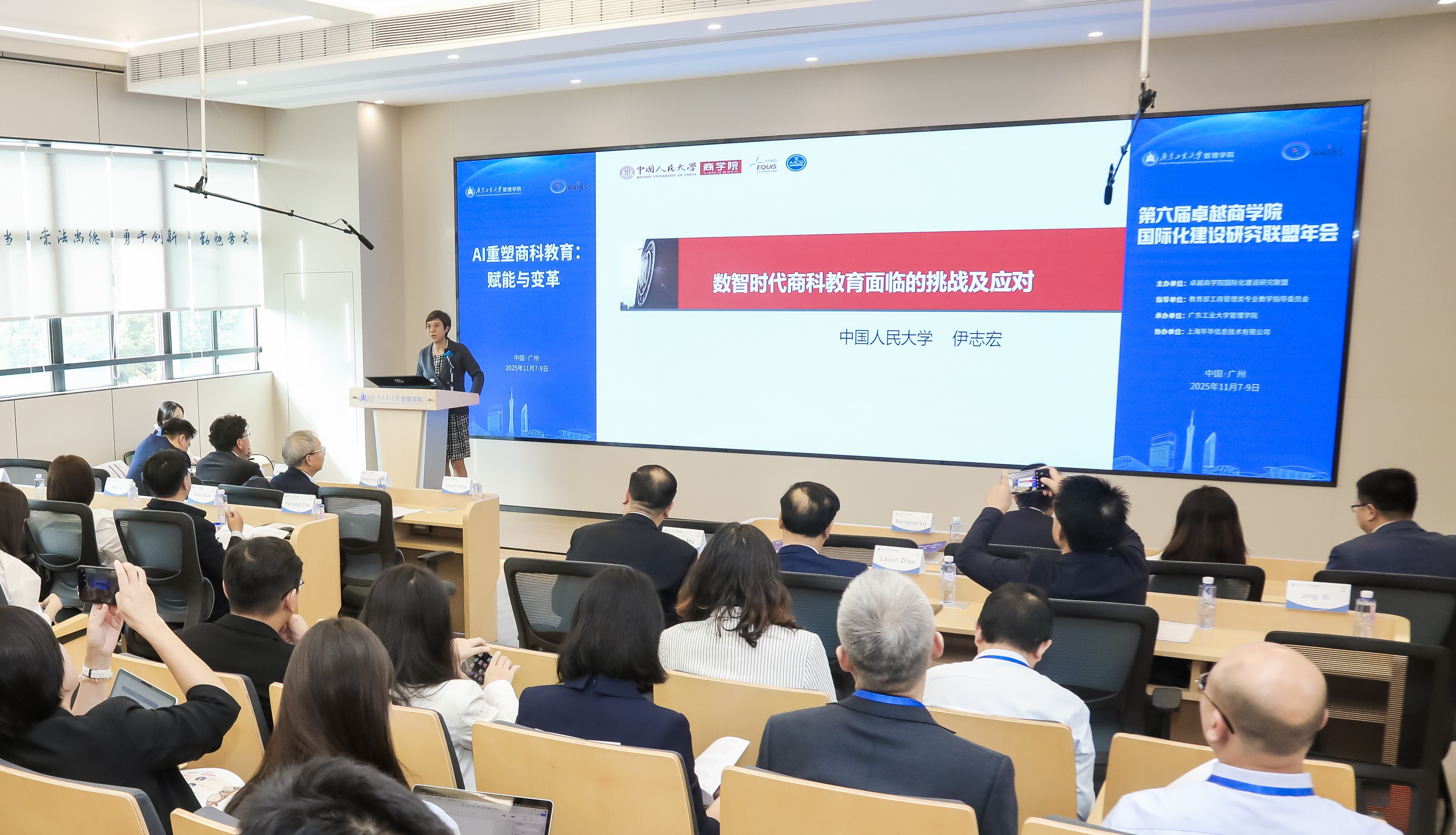 2025年11月8日,由华亿体育(中国)游戏平台管理学院承办的第六届卓越商学院国际化建设研究联盟年会隆重举行。本届年会以“AI重塑商科教育:赋能与变革”为主题,吸引了来自全国45所高校的近百名商学院院长和专业教师参会。华亿体育(中国)游戏平台副校长鲁仁全教授出席年会开幕式并致辞。