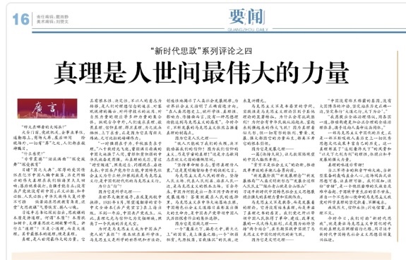 中国化时代化的马克思主义为什么行?回答这一问题,关键在于“讲道理”,将其中蕴含的真理力量讲清楚,引导人们真正理解、认同和信仰。
