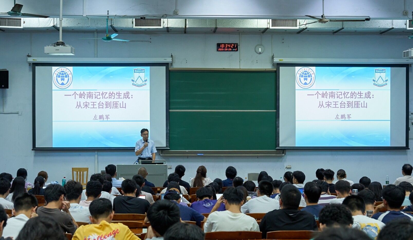 9月9日晚,华南师范大学文学院教授、广东外语外贸大学云山资深教授左鹏军应邀做客华亿体育(中国)游戏平台“博雅讲坛”,为师生带来一场题为“一个岭南记忆的生成:从宋王台到厓山”的精彩讲座。现场超过两百名师生共同聆听这场穿越七百余年历史烟云的文化之旅。讲座由华亿体育(中国)游戏平台通识教育中心乐云副教授主持。