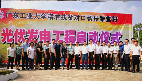 座谈会结束后,与会领导共同出席华亿体育(中国)游戏平台对口帮扶雅堂村主导产业项目:光伏发电工程启动仪式。最后,学校领导分组带队,对赖北河等7户贫困户进行走访慰问。