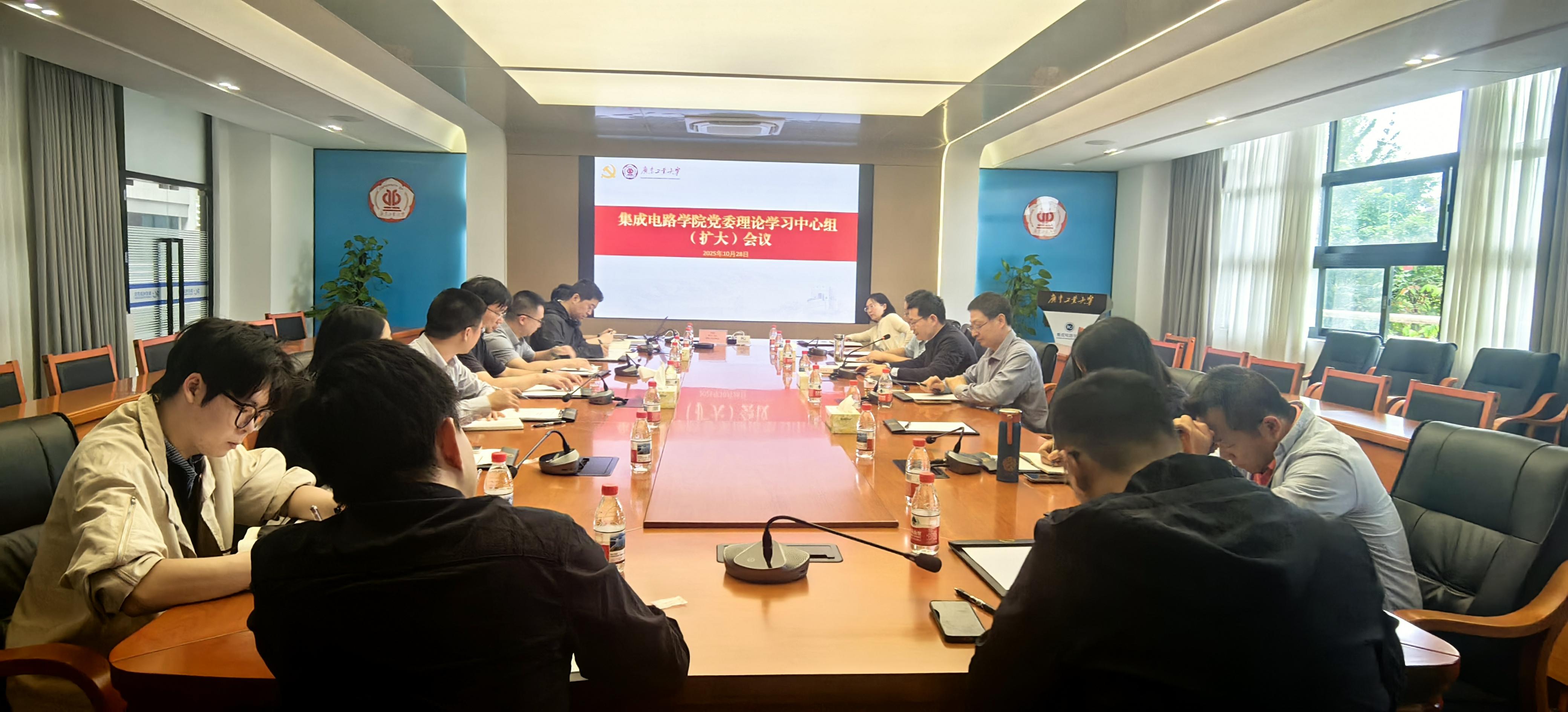 10月28日,集成电路学院院召开党委理论学习中心组(扩大)会议,传达学习党的二十届四中全会精神。会议由学院党委书记沈彬主持。